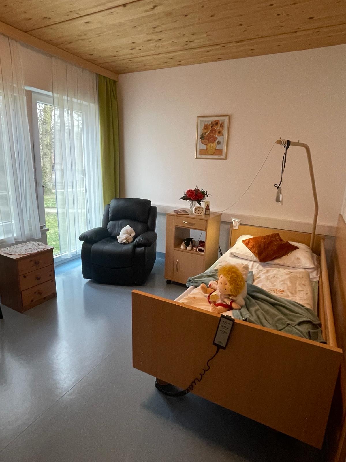 Auf einem Grundstück von 1 Hektar Grund betreuen wir ein Haus für 29 Personen. Die Zimmer ( 5 Zweibett-, sonst nur Einbettzimmer) bieten modernsten Komfort. Eigene Dusche, WC und Fernsehgerät sind bei uns Standartausstattung. Eine moderne Rufanlage ermöglicht jederzeit die Kommunikation mit unseren Mitarbeitern im ganzen Haus.